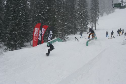 Это 8 марта подарило всем любителям Шерегеша много снега и легкий температурный минус – отличная погода для отличных соревнований. В этот день команда «Big Family» представила новую парковую линию, которая находится под подъемником «Фристайл» и соревнования по slopestyle.