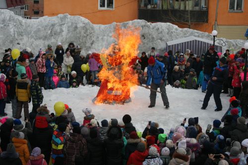 Широкие масленичные гулянья в этом году проходили сразу в двух местах – на Секторе Е и в поселке. Как и положено, в этот праздник были блины, лазанье на столб и, конечно же, сжигание Масленицы.