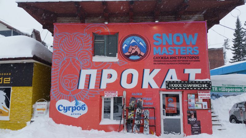 Прокат Snowmasters Расположен напротив отеля «Снежный». Режим работы с 8:30 до 17:30. Представлены горные лыжи и аксессуары для катания. В прокате представлено новое снаряжение фирм: Salomon, Atomic, всего 120 комплектов.