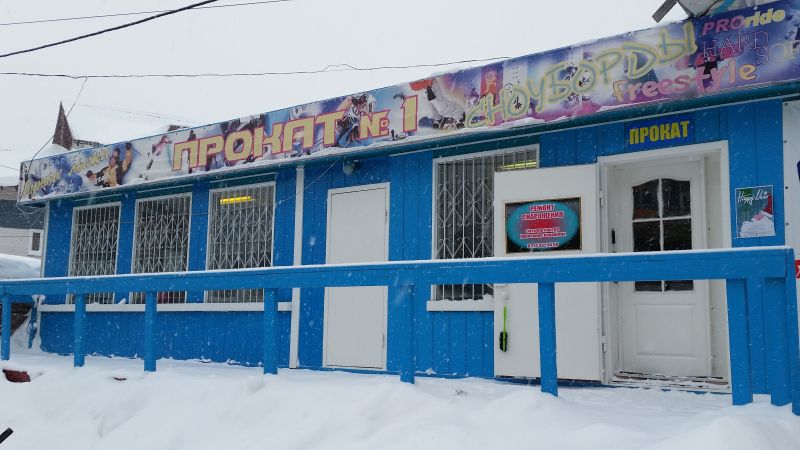 Прокат "Вершина" Расположен напротив отеля «Снежный», рядом с магазином «DRESSCODE» для сноубордистов. Представлены горные лыжи, сноуборды и аксессуары для катания. В наличии линейка горных лыж для детей от 3 лет.