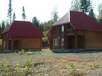 Шале "Постоялый двор" ("Киселёвские палати") Два шале из соснового бруса и прекрасные русские бани. Отличное место для отдыха компаниями от 12 до 16 человек. Расположение: 1,5 км до ГЛК Шерегеш Ценовая категория: от 9600 за 12-местное размещение.