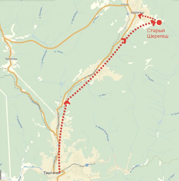 Вам понадобится знаменитый автобус № 101. Он следует через весь Таштагол, Шалым и затем в поселок Шерегеш с заездом в район "Старый Шерегеш".